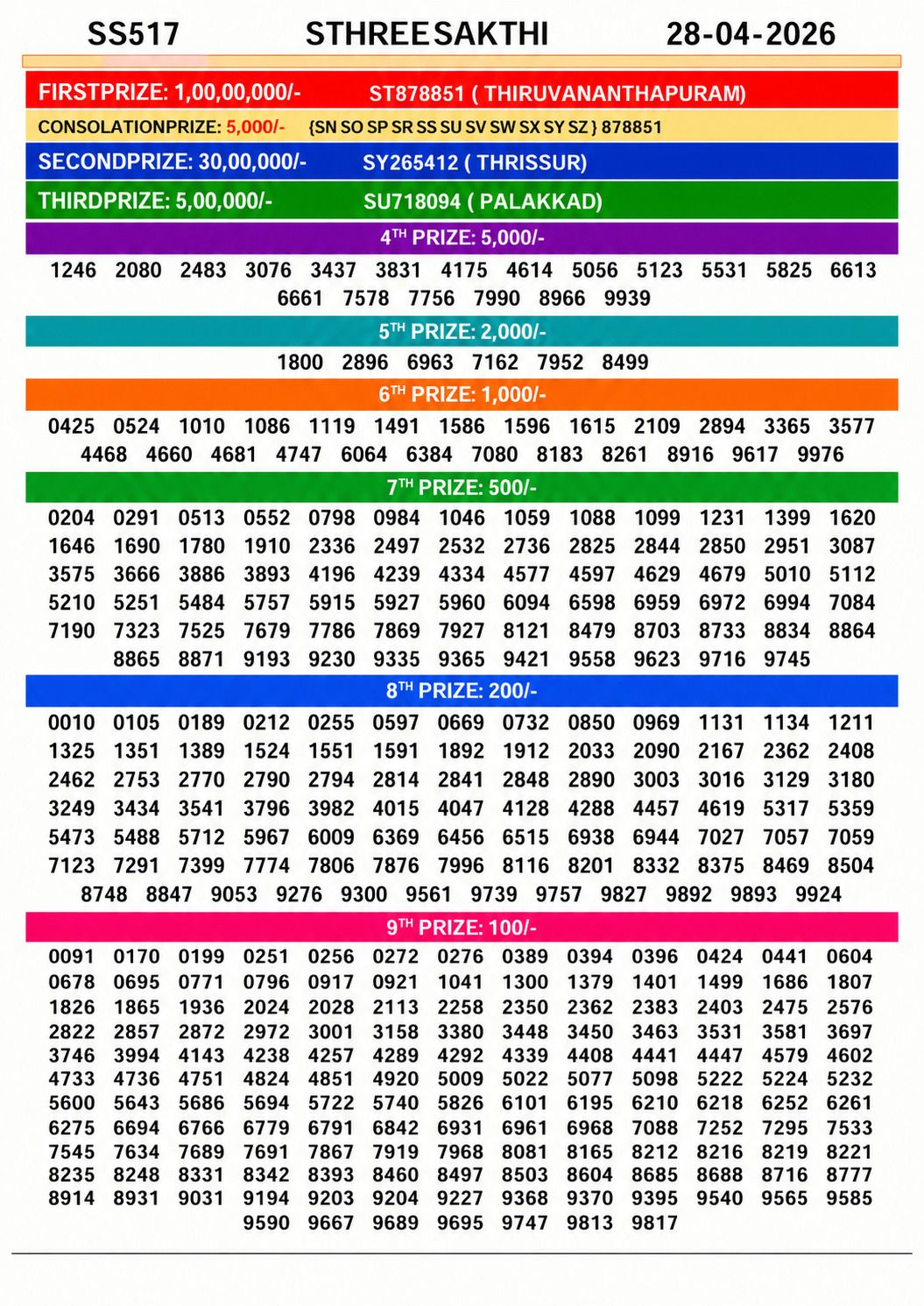 Note: Results are updated here for quick reference. Please verify with the official Kerala State Lottery publication.